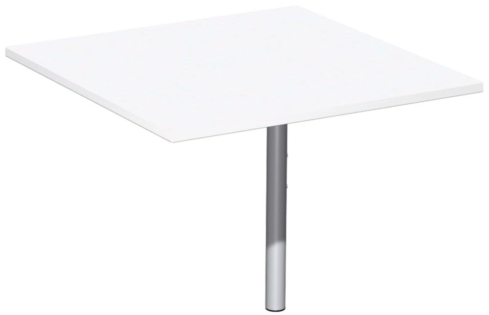 Verkettungsplatte, Viereck 90 Grad, BxTxH 800x800x680-820 mm, höhenverstellbar, Platte weiß, Stützfuß silber
