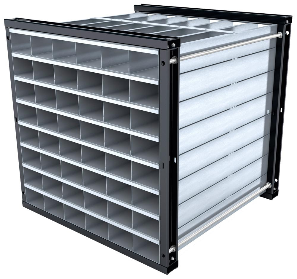 Wabenregal, BxTxH 1000x1000x1000 mm, inkl. 48 Wannen, 6x8 Fächer, Waben BxH 150x90 mm, Wannen verzinkt, Rahmen RAL 7016 anthrazitgrau