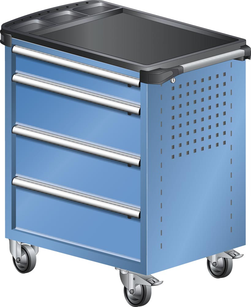 Werkstattwagen, 4 Schubladen: 1x100, 3x200 mm VA, BxTxH 894x525x928 mm, Kunststoffabdeckung, fahrbar, RAL 5012 E6011372