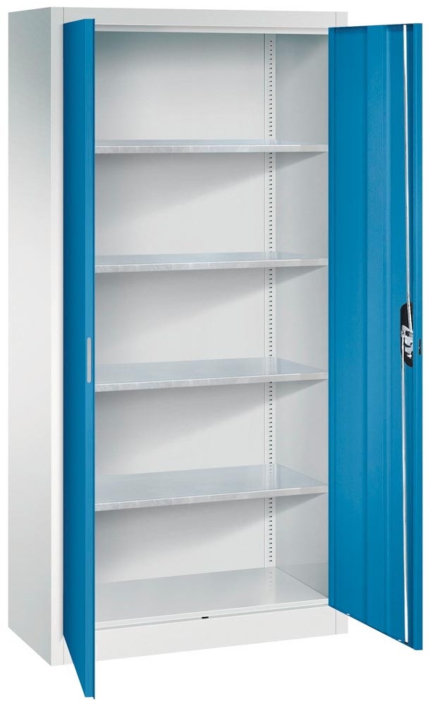 Werkzeugschrank, 4 Fachböden verzinkt, RAL 7035/5010, BxTxH 1200x400x1950 mm, Traglast 70 kg/Boden